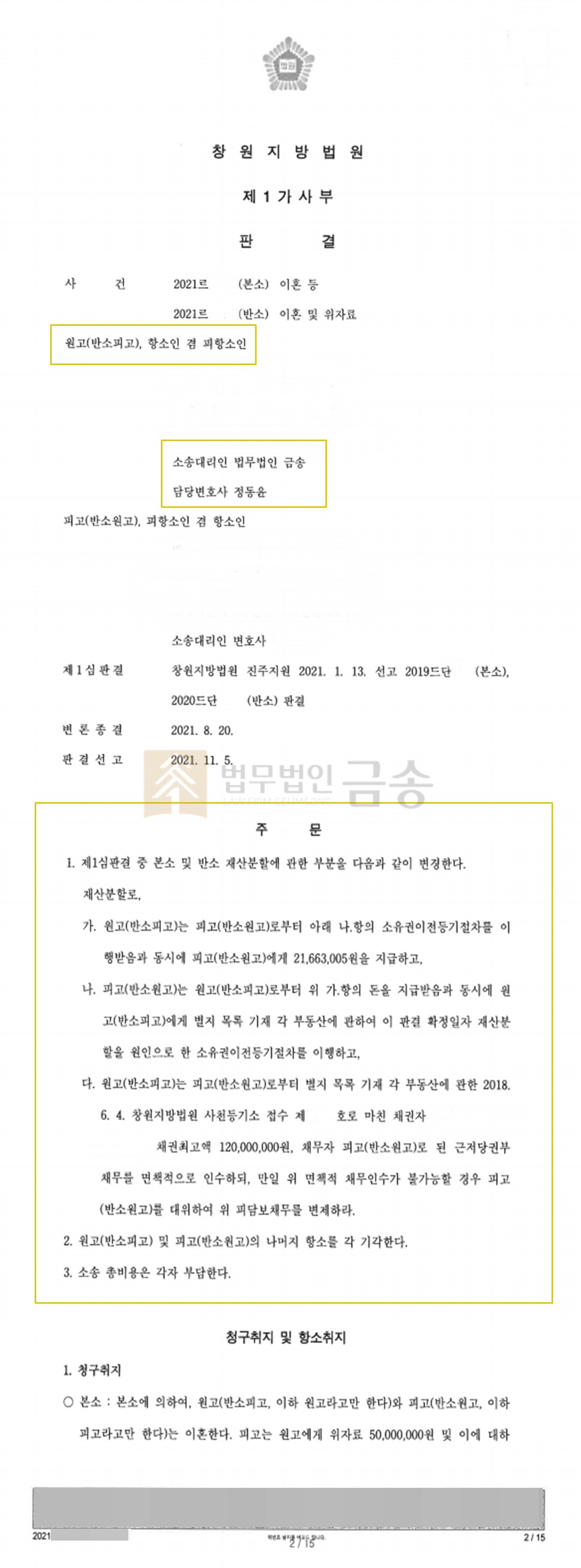 ¡á »ç°Ç °³¿ä ¡áÀÇ·ÚÀÎÀº ÁøÁÖÁö¿ø¿¡¼ 1½É ÀçÆÇÀ» ´Ù¸¥ º¯È£»ç »ç¹«½Ç¿¡ ÀÇ·ÚÇÏ¿© ÁøÇàÇÏ¿´°í, 1½É ÆÇ°á °á°ú°¡ ³ª¿ÔÀ¸³ª ¹è¿ìÀÚ Ãø¿¡¼ ÀÌ·¯ÇÑ °á°ú¸¦ ¹Þ¾ÆµéÀÏ ¼ö ¾ø´Ù°í ÇÏ¸é¼ Ç×¼Ò¸¦ ÇÏ¿© 2½É(Ç×¼Ò½É) ÀçÆÇÀÌ ½ÃÀÛµÇÀÚ º» ¹ý¹«¹ýÀÎ ¼°æÀ» ã°Ô µÇ¾ú½À´Ï´Ù.¡á »ç°ÇÀÇ ÀïÁ¡ ¡áº»°Ç 1½É ¼Ò¼Û¿¡¼´Â Àç»êºÐÇÒÀÌ ÀïÁ¡À̾ú°í ±× Áß¿¡¼µµ ÀÇ·ÚÀΰú ¹è¿ìÀÚ°¡ ÇÔ²² °ÅÁÖÇß´ø 2Ãþ ÁÖÅÃÀ» ´©°¡ ¼ÒÀ¯ÇÏ°Ô µÇ´ÂÁö°¡ ÇÙ½ÉÀ̾ú½À´Ï´Ù.À§ 2Ãþ ÁÖÅÃÀº ¿ø·¡ ¹è¿ìÀÚ ¸íÀÇ·Î µÇ¾î ÀÖ¾ú°í, ÃßÁ¤ ½Ã°¡°¡ ¾à 1¾ï 6õ¸¸¿øÀ̾ú´Âµ¥. 1½É ÀçÆÇ °úÁ¤¿¡¼ ÀÇ·ÚÀΰú ¹è¿ìÀÚ ½Ö¹æ ¸ðµÎ À§ ÁÖÅÃÀÇ °¡Ä¡¸¦ °ø½ÃÁö°¡¿¡ ÁØÇÏ´Â 8,000¸¸¿øÀ̶ó°í º¸¾Ò°í, À§ ÁÖÅÃÀ» ´ãº¸·Î ÇÑ ´ëÃâ±Ý 7,000¸¸¿øÀ» Á¦ÇÏ°í ³ªÀÚ Á¤ÀÛ À§ ÁÖÅÃÀÇ ½ÇÁ¦ °¡Ä¡´Â 1,000¸¸¿ø ¹Û¿¡ µÇÁö ¾Ê¾ÒÀ¸¸ç, ÀÌ ¶§¹®¿¡ À§ ÁÖÅÃÀ» °®°Ô µÇ´Â »ç¶÷ÀÌ 8õ¸¸¿ø »ó´çÀÇ Àç»ê»ó ÀÌÀÍÀ» °ÅÀú ¾ò°Ô µÇ´Â »óȲÀ̾ú½À´Ï´Ù.ÀÌ·¯ÇÑ ÀÌÀ¯·Î 1½É ¼Ò¼Û¿¡¼´Â ÀÇ·ÚÀΰú ¹è¿ìÀÚ ½Ö¹æ À§ ÁÖÅÃÀÇ Çö½ÇÀûÀÎ °¡Ä¡¸¦ ÆÇ´ÜÇÏ´Â °¨Á¤ ÀýÂ÷¸¦ °ÅÄ¡Áö ¾ÊÀº ä ¿À·ÎÁö º»Àο¡°Ô ¼ÒÀ¯±ÇÀ» ´Þ¶ó°í¸¸ ´ÙÅõ¾ú½À´Ï´Ù.±×·±µ¥ 1½É ÆÇ°á °á°ú ¹ý¿ø¿¡¼´Â ¸íÀÇÀÚÀÎ ¹è¿ìÀÚ°¡ ¾Æ´Ñ ÀÇ·ÚÀο¡°Ô À§ ÁÖÅÃÀÇ ¼ÒÀ¯±ÇÀ» ³Ñ°ÜÁÖ¶ó´Â Àç»êºÐÇÒ ÆÇ°áÀ» ÇÏ¿´½À´Ï´Ù.±×·¯ÀÚ ¹è¿ìÀÚ´Â ¼ÒÀ¯ÀÚ¸¦ º¯°æÇÏ´Â °Í ¾øÀÌ ¸íÀÇ´Â ±×´ë·Î µÐ »óÅ¿¡¼ Àç»êÀ» ºÐÇÒÇÏ´Â °ÍÀÌ ¹ý¿ø ÆÇ°áÀÇ ¿øÄ¢Àε¥, 1½É ÆÇ°áÀÌ ÀÌ·¯ÇÑ ÆÇ°áÀÇ ¿øÄ¢À» µû¸£Áö ¾Ê´Â À߸øÀ» ÇÏ¿´´Ù¸ç Ç×¼Ò¸¦ ÇÏ¿´½À´Ï´Ù.ÀÌ¿¡ Ç׼ҽɿ¡¼´Â À§ ÁÖÅÃÀÇ ¼ÒÀ¯±ÇÀ» ÀÇ·ÚÀο¡°Ô ÀÌÀüÇØ ÁÖ¶ó°í ÆÇ°áÇÑ 1½É ÆÇ°áÀÌ Á¤´çÇÑ Áö ¿©ºÎ°¡ ÀïÁ¡À̾ú½À´Ï´Ù.ÀÌ¿¡ ÀÇ·ÚÀÎÀº À§ ÁÖÅÃÀ» º»ÀÎÀÌ ¼ÒÀ¯ÇÒ ¼ö ÀÖµµ·Ï ÇØ´Þ¶ó¸ç º» ¹ý¹«¹ýÀÎ ¼°æ¿¡ ÀÇ·ÚÇÏ¿´½À´Ï´Ù.¡á ¹ý¹«¹ýÀÎ ¼°æÀÇ Á¶·Â ¡á¹ý¹«¹ýÀÎ ¼°æÀº ¹è¿ìÀÚ°¡ ÁÖÀåÇÏ´Â ³»¿ëÀÌ Àç»êºÐÇÒÀÇ ±âº» ¿øÄ¢À̶ó´Â Á¡¿¡ ´ëÇØ¼ ÀÇ·ÚÀο¡°Ô ¼³¸íµå·È½À´Ï´Ù.½ÇÁ¦ Ç×¼Ò½É ÀçÆÇºÎ ¶ÇÇÑ ÀçÆÇ °úÁ¤¿¡¼ ¹è¿ìÀÚ ÃøÀÇ ÁÖÀå¿¡ ¼ÕÀ» µé¾îÁÖ´Â ¸ð¾ç»õ¿´½À´Ï´Ù.ÇÏÁö¸¸ ¾ðÁ¦³ª ¿øÄ¢ÀÌ ÀÖ´Ù¸é ¿¹¿Ü°¡ ÀÖ°í, ´Ù¸¸ ÀÌ·¯ÇÑ ¿¹¿Ü°¡ ½±°Ô ÀÎÁ¤µÇÁö´Â ¾Ê±â ¶§¹®¿¡, º» ¹ý¹«¹ýÀÎ ¼°æÀº ÀÌ·¯ÇÑ ¿¹¿Ü »çÁ¤ÀÌ ¹Þ¾Æµé¿©Áö±â À§ÇÑ Àü·«À» °±¸ÇÏ¿´½À´Ï´Ù.º» ¹ý¹«¹ýÀÎ ¼°æÀº,¨ç ½Ã°¡ °¨Á¤À» ÅëÇØ À§ ÁÖÅÃÀÇ ½Ã°¡°¡ 1¾ï6õ¸¸¿øÀÎ Á¡À» È®ÀÎÇÏ¿© ÀÇ·ÚÀÎÀÌ À§ ÁÖÅÃÀÇ ¼ÒÀ¯±ÇÀ» °®°Ô µÈ´Ù ÇÏ´õ¶óµµ ÁÖÅÃÀÇ °¡Ä¡°¡ Çö½Ç¿¡ ¸Â°Ô Ã¥Á¤µÈ ¸¸Å ¹è¿ìÀÚ°¡ ±ÝÀüÀû ¼Õ½ÇÀ» ÀÔÁö ¾Ê´Â Á¡,¨è À§ ÁÖÅÃÀÇ ¼ÒÀ¯ÀÚ°¡ ¹è¿ìÀÚ ¸íÀÇ·Î µÈ »óÅ¿¡¼ ÀÌÈ¥À» ÇÏ°Ô µÇ¸é À§ ÁÖÅÃÀÇ 1Ãþ Á¡Æ÷¿¡¼ Àå»ç¸¦ ÇÏ´Â ÀÇ·ÚÀÎÀÌ »ó´çÇÑ º¸Áõ±Ý°ú ½Ã¼³ºñ¸¦ µé¿© »õ Á¡Æ÷¸¦ ¾Ë¾ÆºÁ¾ß ÇÏ´Â ºÎ´çÇÑ Á¡ÀÌ ÀÖ´Â ¹Ý¸é, ¹è¿ìÀÚÀÇ °æ¿ì¿¡´Â 2Ãþ ÁÖ°ÅÁö¿¡ È¥ÀÚ °ÅÁÖÇϰí ÀÖ¾î ±×°¡ ¿î¿µÇÏ´Â °¡°Ô ¿·À¸·Î ¼Õ½±°Ô À̻縦 ÇÒ ¼ö ÀÖ´Ù´Â Á¡,¨é 1½É ÆÇ°áÀ» ÇÑ ÀçÆÇºÎ°¡ ¸¹Àº °í¹ÎÀ» °ÅÃÄ ÀÌ·¯ÇÑ ¿¹¿Ü¸¦ ÀÎÁ¤ÇÏ´Â ÆÇ°áÀ» ÇÏ¿´´Ù¸é ÀÌ·¯ÇÑ ¿¹¿Ü ÆÇ°áÀ» Ç׼ҽɿ¡¼ Á¸ÁßÇÒ Çʿ䰡 ÀÖÀ½À» ÁÖÀå, ÀÔÁõÇÏ¿´½À´Ï´Ù.(°³ÀÎÁ¤º¸ ¹®Á¦·Î ÀÚ¼¼ÇÑ ³»¿ëÀ» Àû½ÃÇÏÁö ¸øÇÏ´Â Á¡¿¡ ´ëÇØ¼ ¾çÇØ ºÎʵ右´Ï´Ù.)¡á »ç°ÇÀÇ °á°ú ¡á¹ý¹«¹ýÀÎ ¼°æÀÇ ¹ý·üÁ¶·ÂÀÇ °á°ú, ¹ý¿ø¿¡¼´Â À§ ÁÖÅÃÀÇ ¼ÒÀ¯±ÇÀ» ÀÇ·ÚÀο¡°Ô ÀÌÀüÇØ ÁÖ¶ó´Â ½Â¼Ò ÆÇ°áÀ» ÇÏ¿´½À´Ï´Ù.